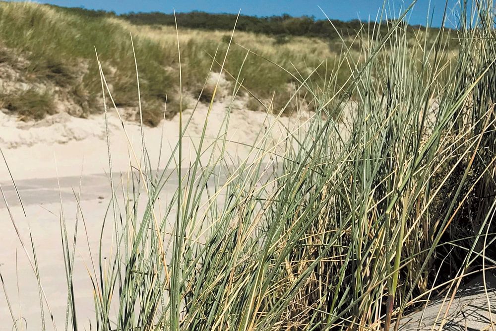 L'herbe des dunes brille fièrement dans le sable de la côte zélandaise. Les dunes d'été sont magnifiques. La beauté naturelle est un régal pour les yeux. Une belle entrée de plage à Schouwen Duivenland. Le sable doux et propre et le ciel bleu complètent le tableau. Une image parfaite dans votre pièce naturelle et super cool comme toile d'extérieur pour une atmosphère estivale détendue.