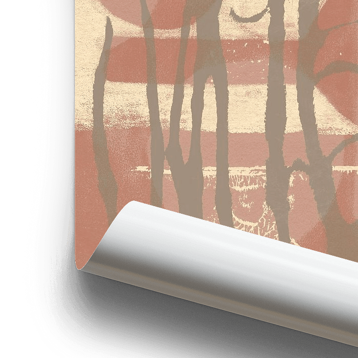 Art botanique moderne mixte semi-abstrait. Collage de formes géométriques abstraites et de monotypes de vraies feuilles, plantes et fleurs. Ambiance calme, élégante et naturelle. Couleurs pastel claires, textures douces - art pour un style de vie romantique, japonais, scandinave, basique, design, bohème, rétro, éclectique ou…