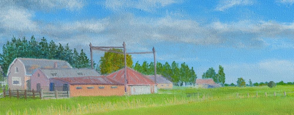 Horstermeer, Horstermeerpolder à Nederhorst den Berg. Peinture acrylique de Marlies Huijzer. Wijdemeren, Hollande du Nord, Paysage avec ferme