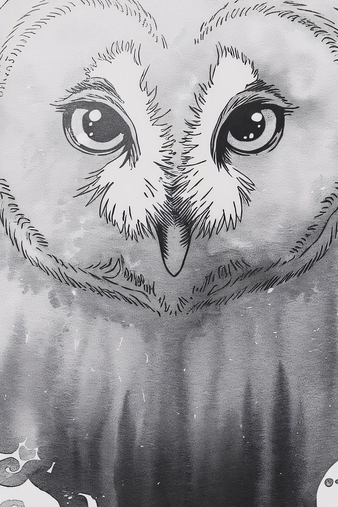 Ce dessin présente une belle illustration détaillée d'un hibou, élégamment rendue avec des techniques douces d'aquarelle en noir et blanc. Les lignes douces et les formes fluides donnent à l'image une touche de rêve. La combinaison d'un portrait de hibou lumineux avec des formes ondulées abstraites en bas rend cette œuvre d'art unique et polyvalente. Cette œuvre d'art peut créer une atmosphère apaisante dans n'importe quelle pièce, comme une chambre ou un bureau. N'utilisant que quelques couleurs, il s'adapte parfaitement aux intérieurs minimalistes et modernes, se fondant subtilement dans son environnement tout en restant un élément marquant.