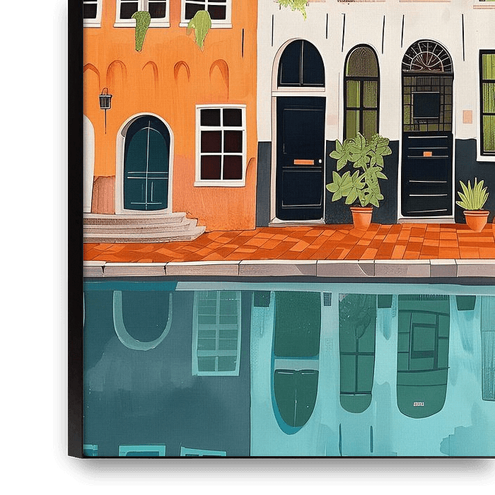 Acheter ce tableau Illustration d'une maison sur le canal d'Amsterdam par But First Framing sur toile, aluminium, ArtFrame ou photographie (encadrée), impression d'art en haute qualité et tout format.