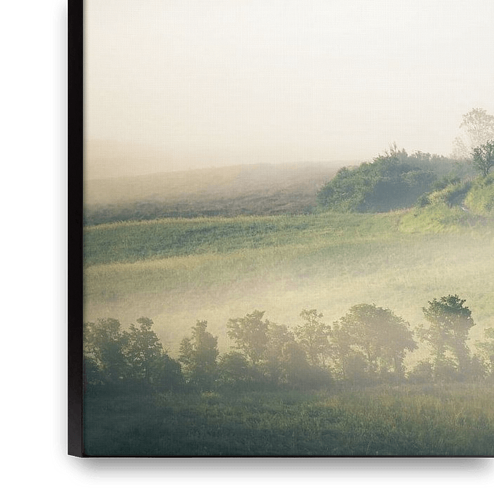 Achetez cette œuvre d'art de paysage Italie Toscane Val d'Orcia avec brouillard par Jean Claude Castor sur toile, aluminium, ArtFrame ou photographie (encadrée), impression d'art en haute qualité et tout format.