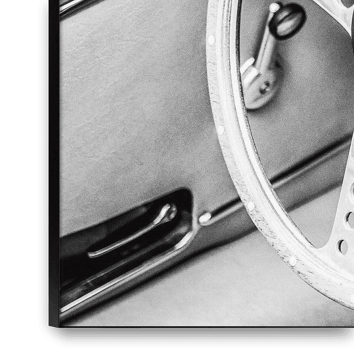 À propos de ‘Jaguar E-Type Roadster, intérieur de voiture de sport d'époque en noir et blanc’ par Sjoerd van der Wal Photographie