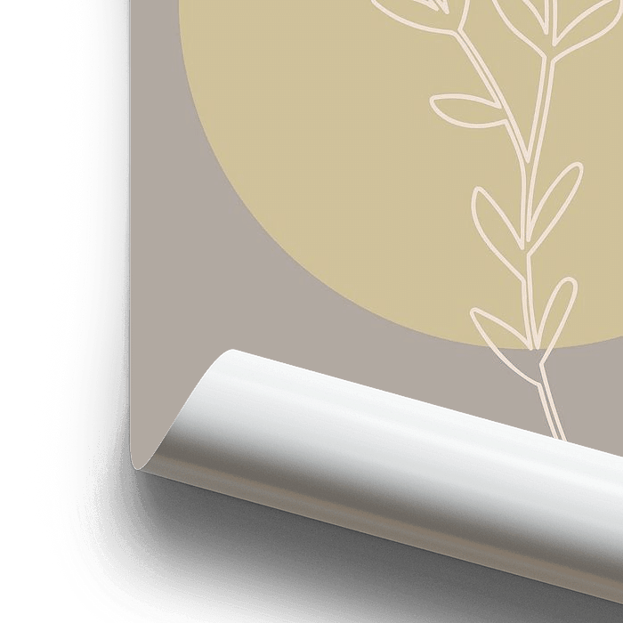 À propos de ‘Japandi. Feuilles botaniques boho en or et taupe no. 8’ par Dina Dankers