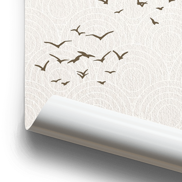 Japandi. Paysage abstrait avec des oiseaux sur un motif géométrique japonais. Art moderne abstrait minimaliste zen. Style d'intérieur scandinave, japonais, basique, bohème.