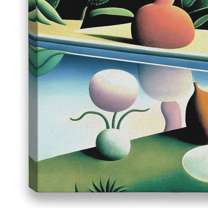 Un jardin tropical surréaliste avec une piscine. Le jardin est abondamment couvert de plantes et d'arbres luxuriants, aux formes et aux couleurs inhabituelles. Il y a par exemple des arbres sphériques et des fleurs aux formes et aux couleurs étranges. Cette œuvre d'art numérique a été créée à l'aide de diverses techniques telles que la…