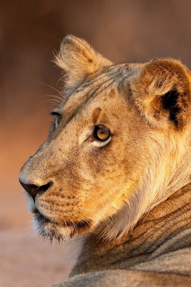 Ce jeune lion cherchait à rejoindre une lionne avec 2 lionceaux mais cela n'a pas été entièrement apprécié par les dames ;-). Étonné, il s'est allongé dans le soleil du soir... Je ne comprends pas pourquoi elles ne le trouvaient pas attirant.