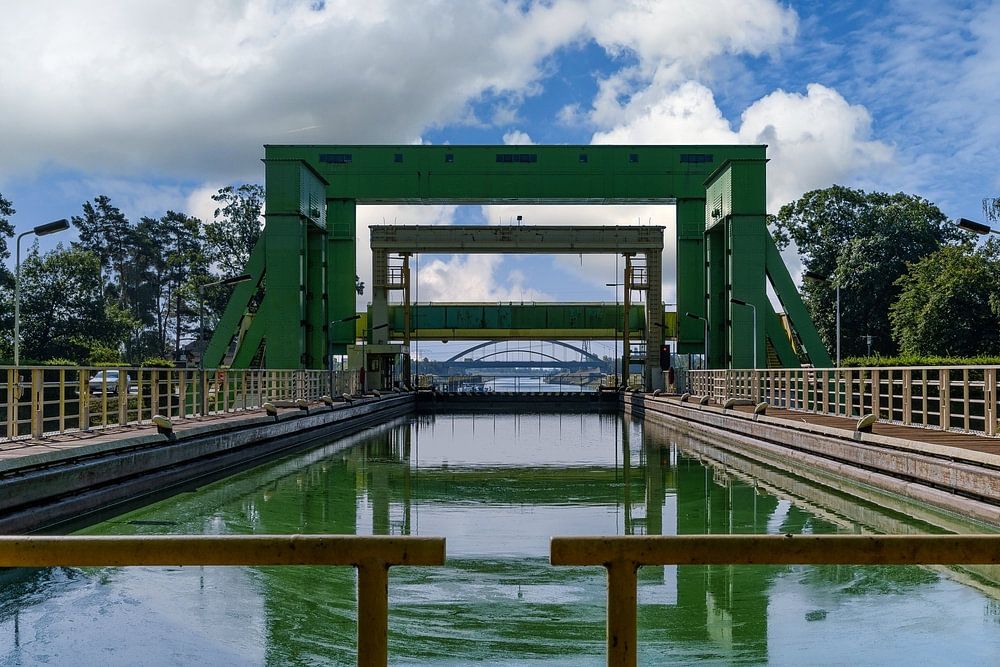 L'ascenseur à bateaux de Rothenburg an der Elbe sur le canal Mittelland. Jonction de voies navigables près de Magdebourg