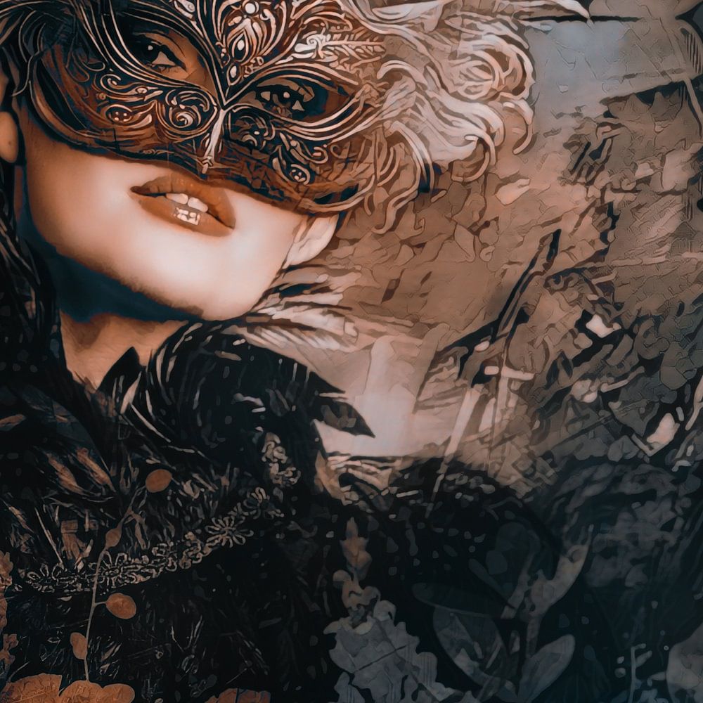 La dame et son oiseau sont apparemment assis sur un balcon, c'est-à-dire que la dame est assise sur le balcon et l'oiseau sur la balustrade. L'oiseau attend manifestement quelque chose de la dame, puisqu'il la regarde avec impatience. La dame est plus attentive à autre chose. Elle est masquée et se prépare donc probablement à un bal masqué et festif. L'oiseau attend peut-être quelque chose à manger, mais il peut aussi s'agir de quelque chose de plus surréaliste, par exemple une conversation ou une sérénade, on ne sait jamais où le contact avec un oiseau va nous mener. Il y a beaucoup de place dans cette œuvre pour en faire une histoire. C'est pourquoi vous continuez à regarder, à regarder ce qui se passe réellement ici. Cette œuvre est colorée, mais les couleurs sont un peu plus opaques que celles que j'utilise habituellement. Les couleurs cyan foncé, camel, marron et noir dominent vraiment ici.