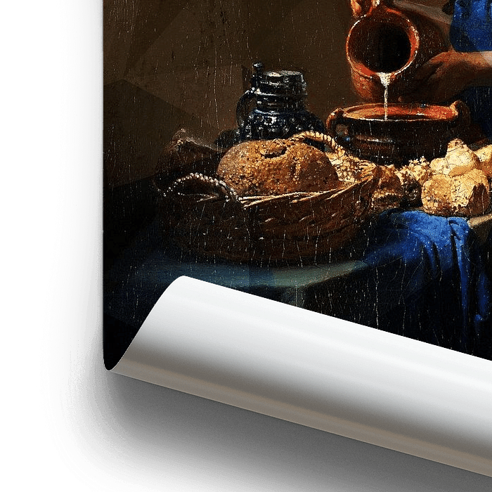 Achetez cette œuvre d'art moderne La laitière de Vermeer avec motif géométrique par Dina Dankers sur toile, aluminium, ArtFrame ou photographie (encadrée), impression d'art en haute qualité et tout format.