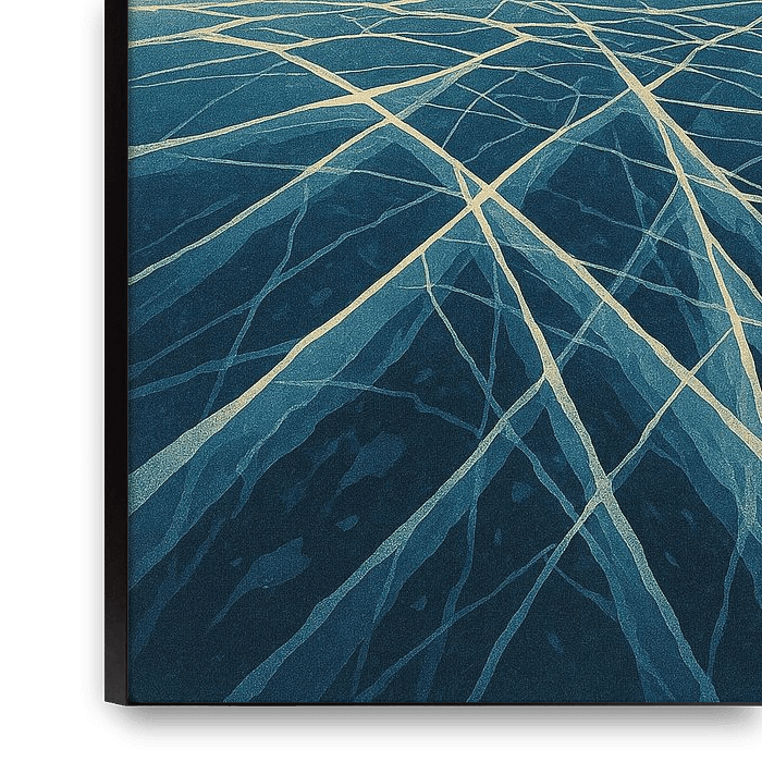 Admirez le pouvoir hypnotique du lac le plus profond et le plus ancien du monde avec cette superbe illustration du lac Baïkal. L'œuvre se concentre sur la célèbre glace bleue craquelée qui se forme en hiver, représentée ici par des réseaux géométriques complexes de turquoise et d'indigo profond qui s'étendent à l'infini dans le…