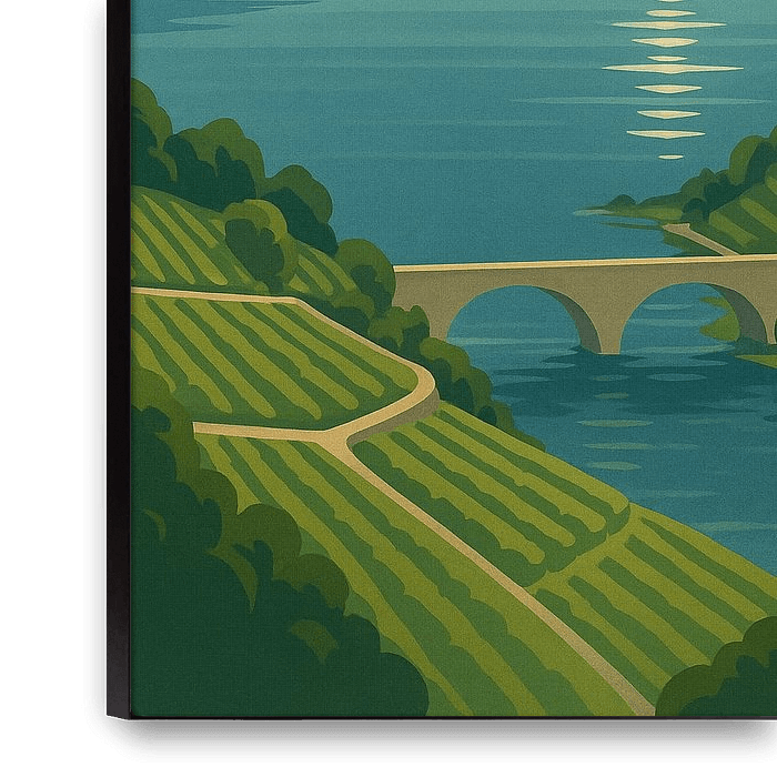 Cette affiche de voyage sur le lac Léman, en Suisse et en France, illustre magnifiquement les eaux sereines et le majestueux décor alpin de l'un des lacs les plus emblématiques d'Europe. Entouré de vignobles, de charmants villages et des Alpes, le lac Léman est depuis longtemps considéré comme un joyau de la région. Ce poster de style…