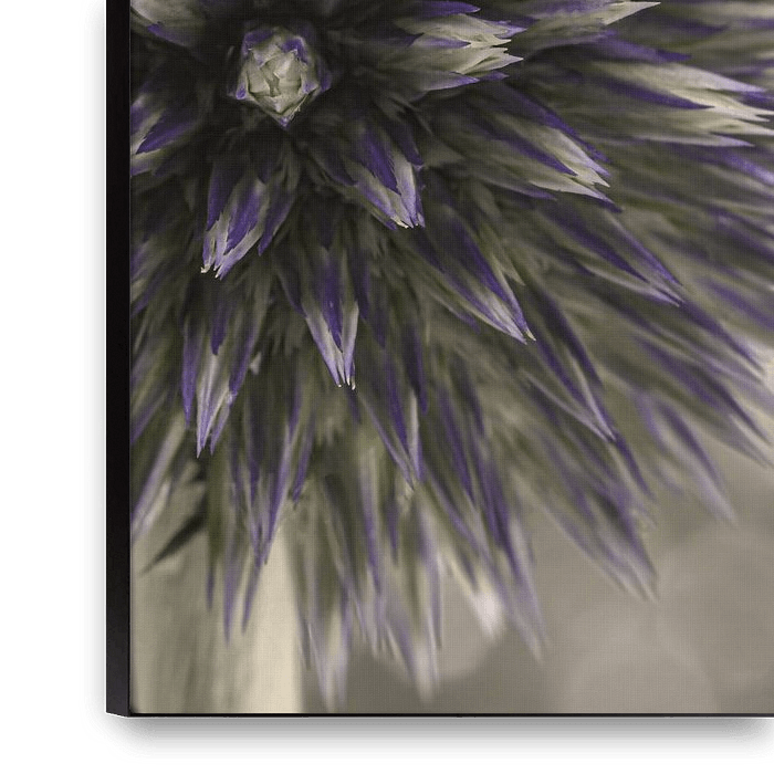 "Un demi chardon boule scintille devant un fond brillant" ; est une photo macro d'un bulbe (fleur) d'un chardon boule. Ce bulbe a l'air très cool de près. On dirait qu'il y a toutes ces petites fleurs sur lui, sur le point de s'ouvrir. Un peu plus de la moitié du bulbe est dans la photo, ce qui crée une image calme. L'arrière-plan a été créé à partir d'un effet que j'ai obtenu grâce à l'éclairage, aux réglages de l'appareil photo et à quelques matériaux. En appliquant cet effet de la bonne manière, vous obtenez de belles sphères (en fait plutôt 8 coins) en arrière-plan, dans toutes sortes de tons bruns différents, comme le beige, le taupe, le sable et le crème. On a l'impression que l'arrière-plan brille, d'où le titre. Comme j'ai choisi une faible profondeur de champ pour prendre cette photo, ce sont surtout les petites fleurs de l'avant qui sont nettes. Plus l'arrière-plan est éloigné, plus il s'estompe. Cela donne une impression de profondeur à l'œuvre. En outre, cela donne une impression de rêve à l'image. Si vous zoomez sur l'œuvre, vous pouvez le voir clairement ! Cette œuvre pourrait, par exemple, être magnifiquement accrochée comme décoration murale dans la cuisine, la chambre à coucher, la salle à manger ou simplement au-dessus du canapé ! Elle est également magnifique dans des lieux professionnels, par exemple sur le mur d'une salle de réunion, d'un bureau, d'une salle d'attente ou d'une salle d'entraînement ! Marjolijn van den Berg