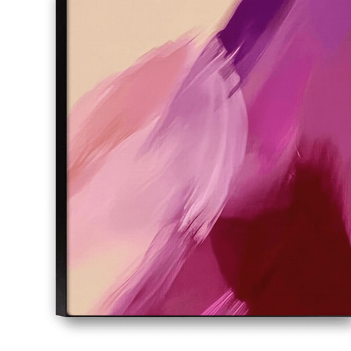 Cette œuvre d'art capture l'essence du mouvement grâce à l'utilisation de lignes floues et de couleurs vibrantes. L'image montre une figure de profil, apparemment en mouvement, avec des tons vifs de rose et de violet qui enveloppent le sujet. L'effet de flou, combiné aux lunettes de soleil et à l'arrière-plan minimaliste, suggère un sentiment de vitesse et de fluidité, comme si le spectateur capturait un moment fugace dans le temps. La composition générale souligne le contraste entre l'immobilité de l'arrière-plan et le mouvement dynamique de la figure, créant à la fois un sentiment de mystère et d'élégance.