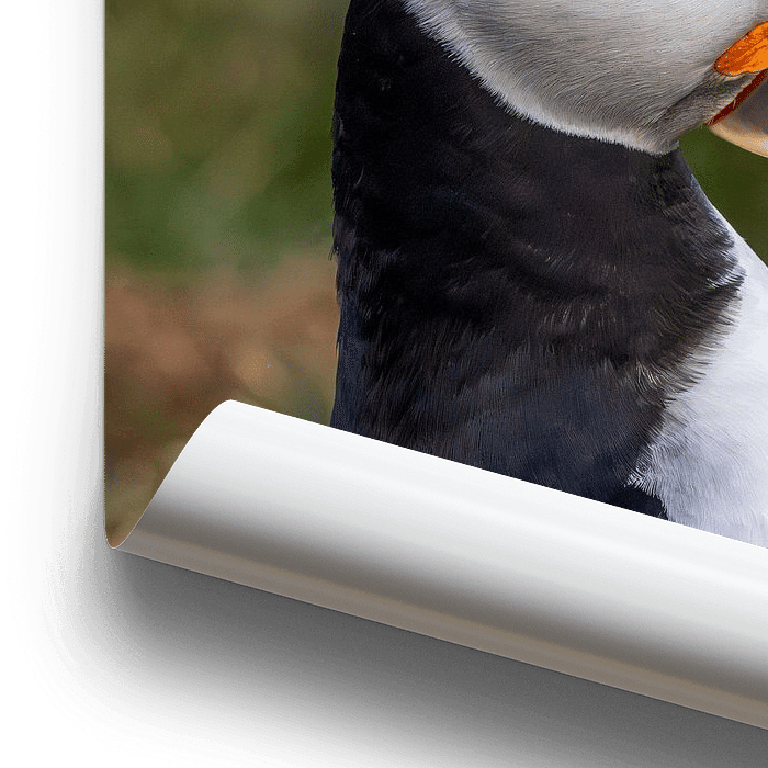 Achetez cette œuvre d'art d'oiseau Le regard d'un macareux par Mark Sluijmers sur toile, aluminium, ArtFrame ou photographie (encadrée), impression d'art en haute qualité et tout format.