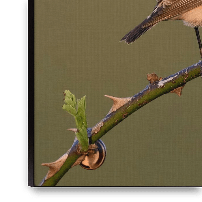 Le tarier des prés (Saxicola rubetra) s'assoit à la première lueur d'une vigne de mûres et regarde autour de lui, la faune, l'Europe.