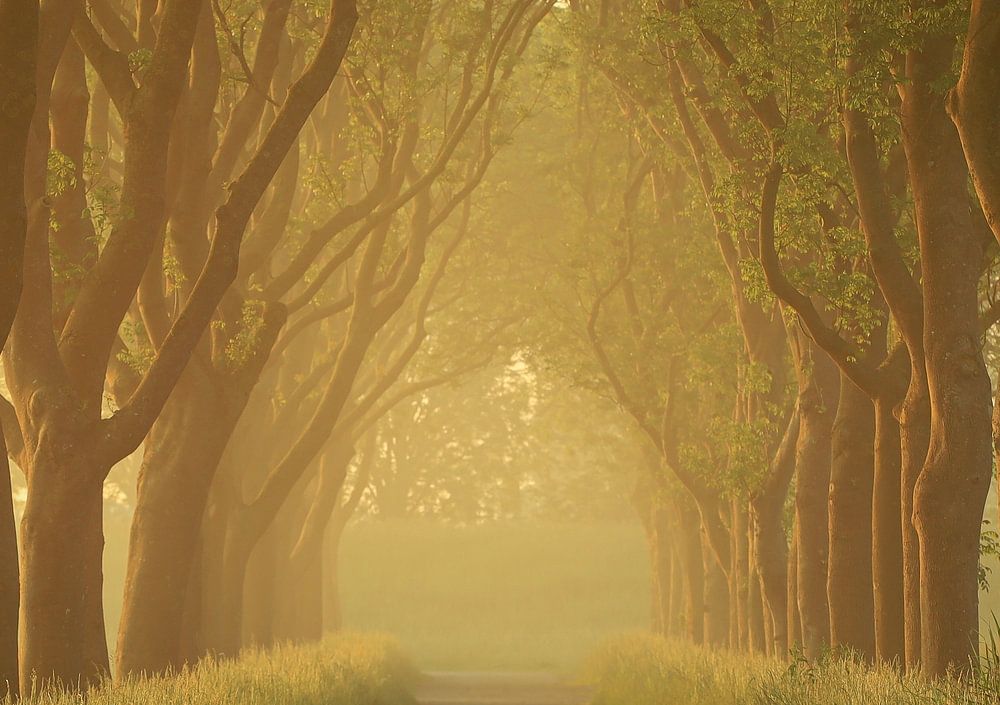 Cette fois-ci, il y avait un peu de brouillard et pas de nuages, ce qui a permis au soleil de jouer librement et de donner à l'allée une couleur orangée. L'atmosphère était magnifique et j'ai à nouveau profité du moment et de la tranquillité.