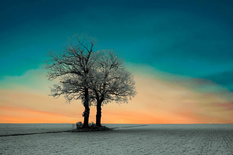 Achetez cette œuvre d'art de paysage Lever du soleil sur un paysage d'hiver par Gert Hilbink sur toile, aluminium, ArtFrame ou photographie (encadrée), impression d'art en haute qualité et tout format.