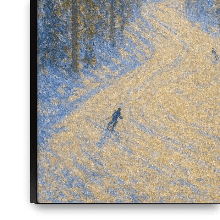 Cette impression d'art est parfaite pour les maisons alpines modernes, les chalets de ski ou les intérieurs dynamiques qui apprécient l'énergie équilibrée par la sérénité. Elle est parfaite au-dessus d'un foyer, dans une salle familiale ou même dans un espace de travail créatif où l'inspiration et le calme sont nécessaires. Grâce à son approche inspirée de Monet, l'œuvre transcende la simple représentation - elle devient émotion, mémoire, lumière capturée dans l'immobilité. Choisissez cette impression lorsque vous souhaitez que votre décoration murale reflète non seulement les paysages d'hiver, mais aussi l'esprit de l'hiver : le mouvement, la joie, la lumière, la clarté. Le résultat est une déclaration raffinée et impressionniste dans votre décor - un sujet de conversation et une source de dynamisme paisible.