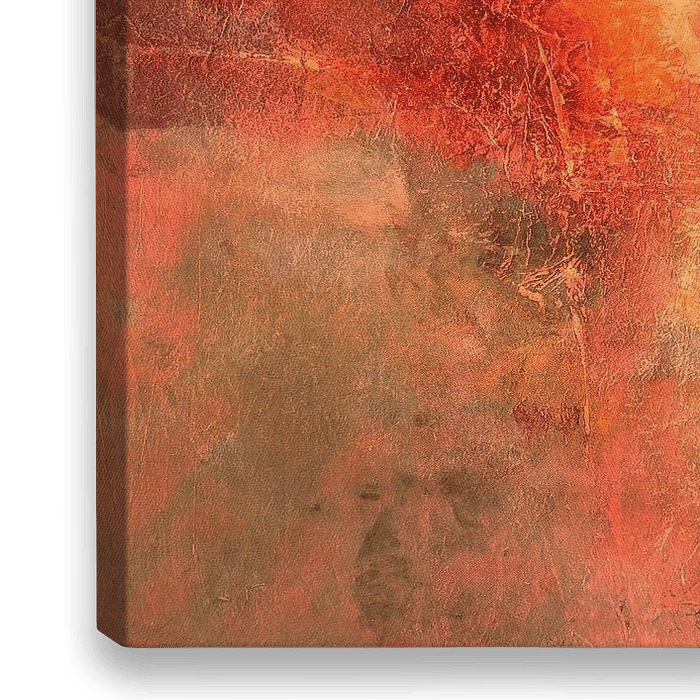 Achetez cette œuvre d'art abstraite Lumière en fin de soirée - rouge et or par Annette Schmucker sur toile, aluminium, ArtFrame ou photographie (encadrée), impression d'art en haute qualité et tout format.