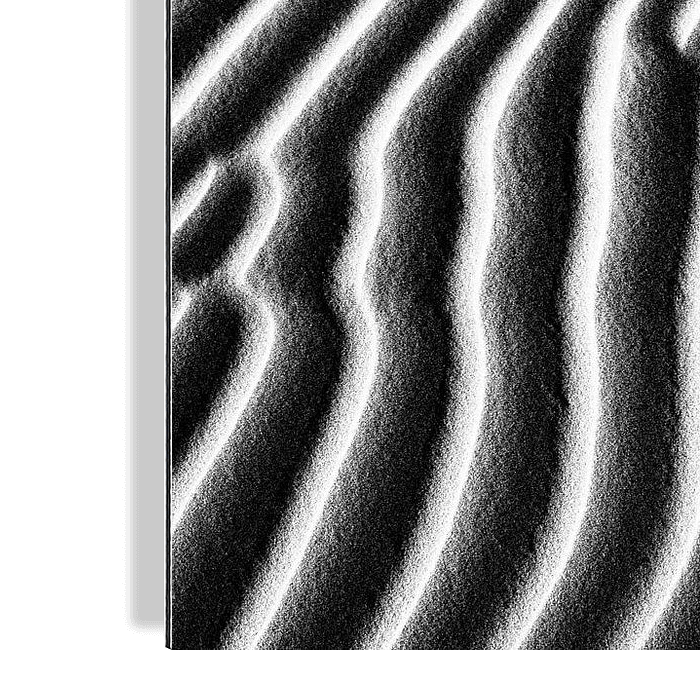 Des formes, des textures, des motifs, des ombres et des jeux de lignes magnifiques dans le désert. En convertissant l'image en noir et blanc, vous n'êtes pas distrait par la couleur et vous obtenez une image minimaliste. Les formes et les lignes retiennent davantage l'attention. Cette image s'intègre bien dans un décor minimaliste. Elle crée le calme et la détente. C'est aussi la force du grand désert du Sahara en Afrique. Des dunes de sable dansantes pour le mur.