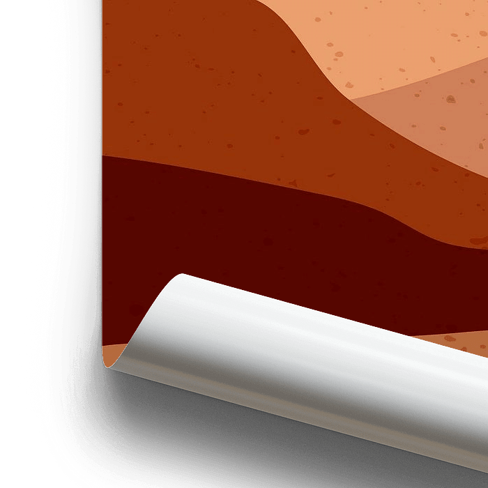 Cette œuvre d'art capture un paysage rétro apaisant avec une pleine lune montante au-dessus de douces collines ondulantes. Le style vectoriel minimaliste, rehaussé d'une texture subtile, utilise des tons chauds de terre cuite et de sépia pour créer une atmosphère sereine. Inspiré par les intérieurs bohèmes et l'esthétique des affiches…