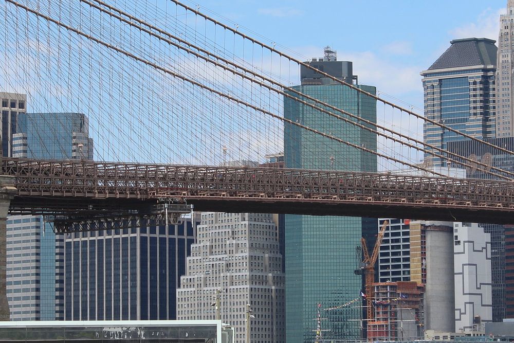 Manège sous le pont de Brooklyn avec l'horizon de New York