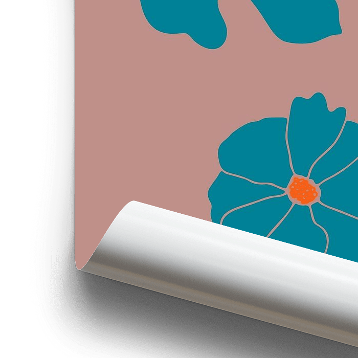 Motifs floraux simples et semi-abstraits dans une palette de couleurs d'inspiration rétro.