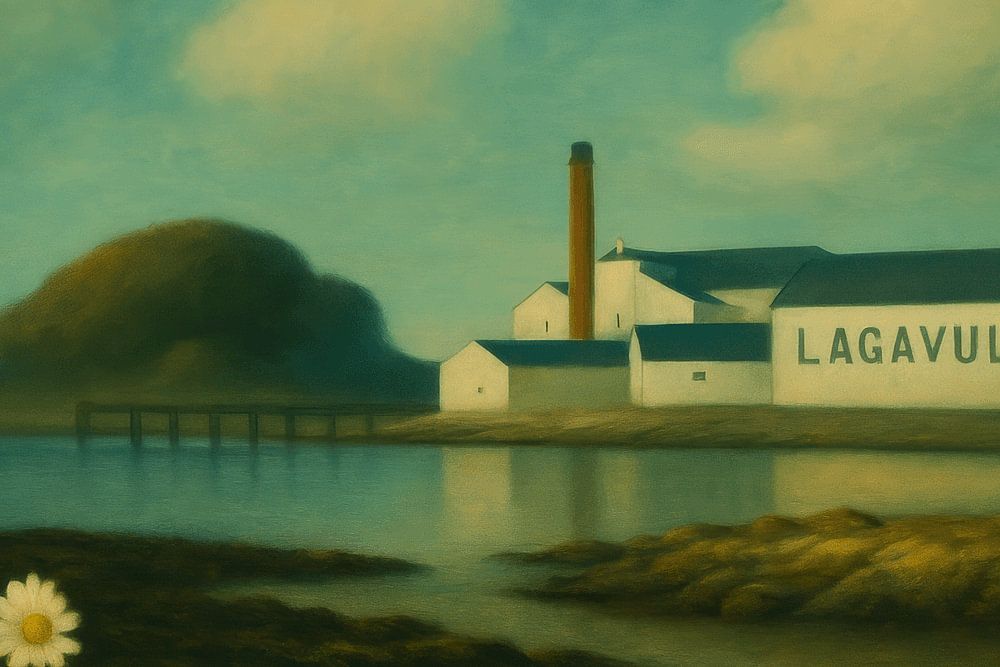 Sur l'île d'Islay, où l'air sent toujours légèrement la mer et la tourbe, la distillerie Lagavulin se dresse comme une icône dans le paysage. Dans ce montage, j'ai transformé ma propre photo en une peinture pleine de tranquillité et de détails. Les marguerites au premier plan s'épanouissent abondamment dans la lumière de l'été, leurs pétales blancs captant la lumière du soleil et offrant un contraste ludique avec les lignes droites et les façades blanches de la distillerie derrière elles. L'image respire la simplicité, mais elle est pleine de couches : les fleurs, l'architecture, l'eau et le ciel, tout s'imbrique.
