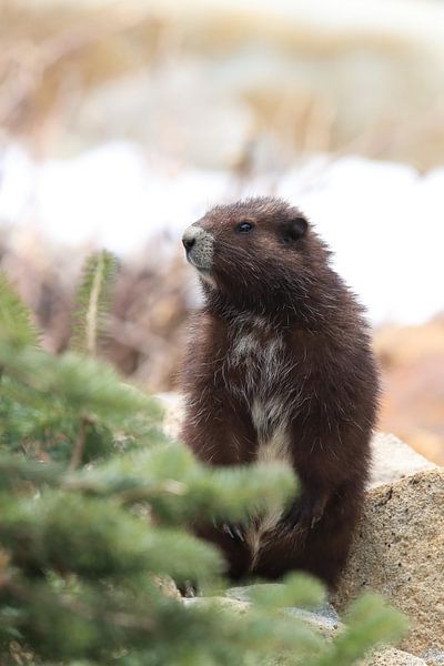 Marmot de l'île de Vancouver ( Marmota vancouverensis) Mount Washington dans l'habitat naturel, Vanc par Frank Fichtmüller