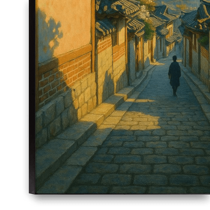 Un nouveau jour se lève sur Séoul, peignant les toits de tuiles du village Hanok de Bukchon dans la chaude lumière du matin. Les cerisiers en fleurs étendent leurs branches sur les étroites allées de pierre, leurs pétales scintillant comme de doux confettis dans la lumière du soleil. Au-delà de l'allée paisible, la ligne d'horizon…