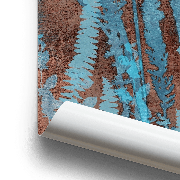 À propos de ‘Monotype de feuilles botaniques en bleu cobalt et brun rouille’ par Dina Dankers