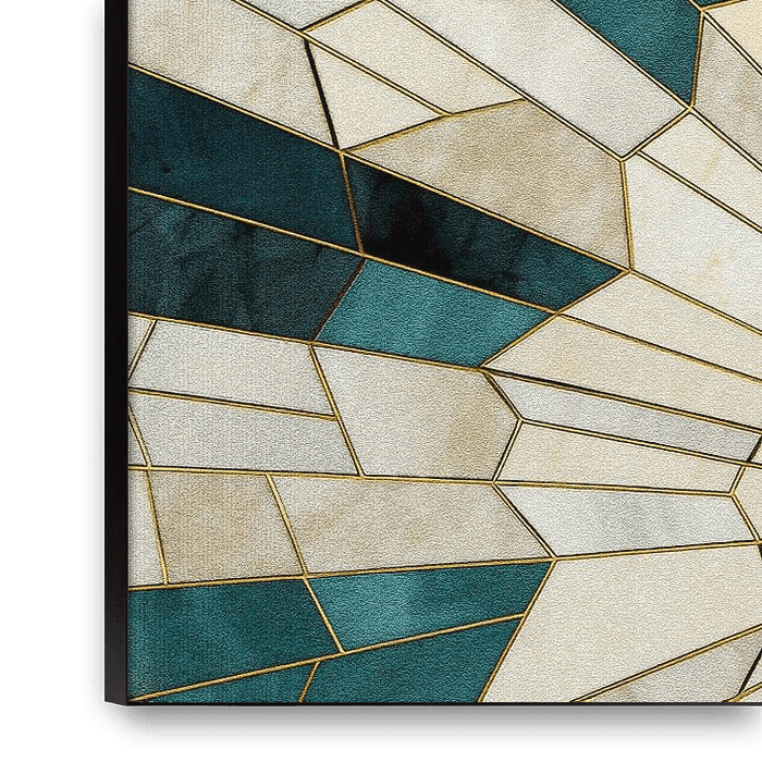 Un motif classique turquoise, blanc et or. Cette pièce s'inspire des formes et de la palette de couleurs du mouvement artistique Art déco des années 1920. Cette pièce donne un aspect élégant et classique à votre intérieur !