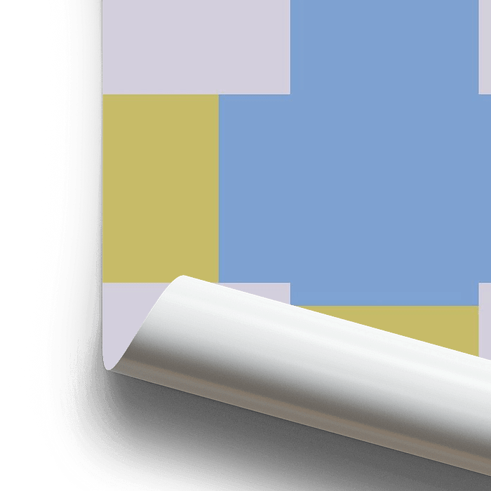 Achetez cette œuvre d'art abstraite Motif géométrique abstrait en bleu clair, blanc et olive par Dina Dankers sur toile, aluminium, ArtFrame ou photographie (encadrée), impression d'art en haute qualité et tout format.