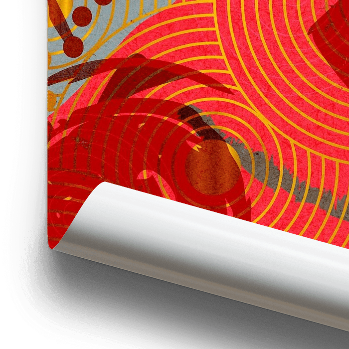 Achetez cette œuvre d'art abstraite Motif géométrique japonais rétro doré en rouge, brun et bleu par Dina Dankers sur toile, aluminium, ArtFrame ou photographie (encadrée), impression d'art en haute qualité et tout format.