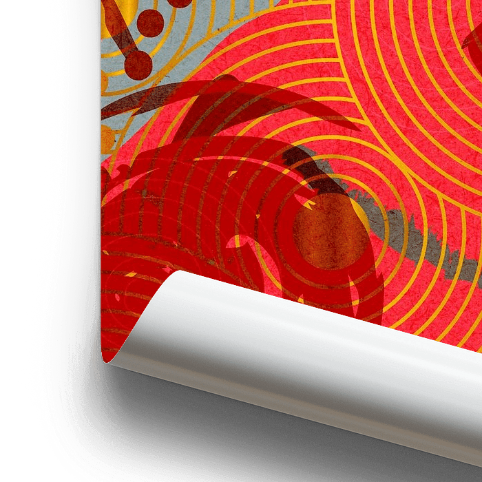 Achetez cette œuvre d'art abstraite Motif géométrique japonais rétro doré en rouge, brun et bleu par Dina Dankers sur toile, aluminium, ArtFrame ou photographie (encadrée), impression d'art en haute qualité et tout format.
