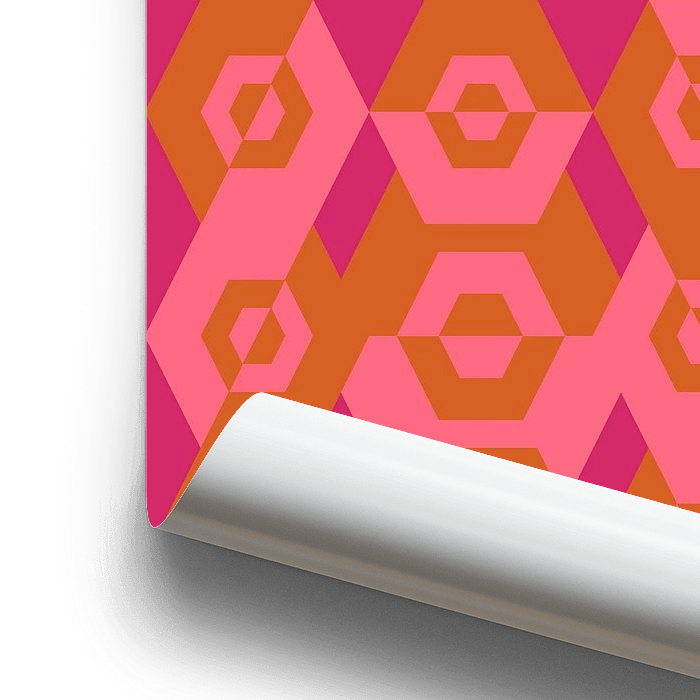 Motif géométrique abstrait moderne avec des formes hexagonales dans une palette de couleurs d'inspiration rétro.
