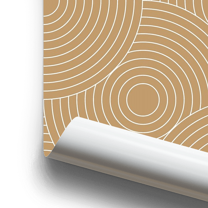 Cercles concentriques blancs sur jaune ocre doré.