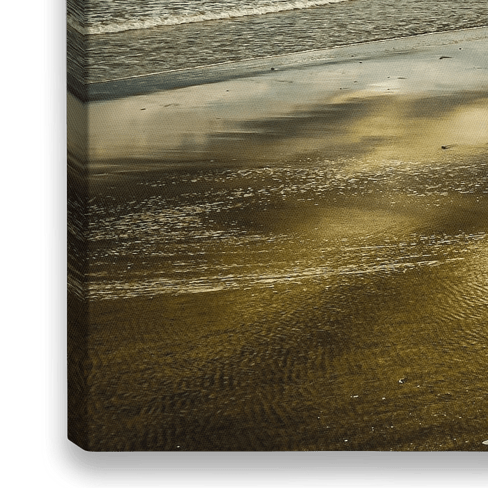 Reflet du mur du quai et des phares sur la plage du Grau d'agde pendant un orage en France