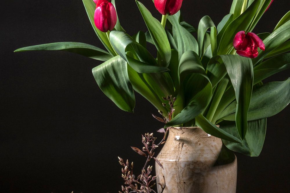 Achetez cette œuvre d'art florale Nature morte aux tulipes par Hanneke Luit sur toile, aluminium, ArtFrame ou photographie (encadrée), impression d'art en haute qualité et tout format.