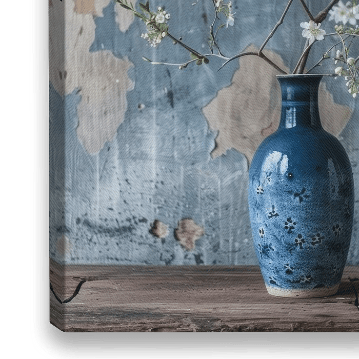 À propos de ‘Nature morte de vase bleu sur une vieille table en bois’ par Digitale Schilderijen