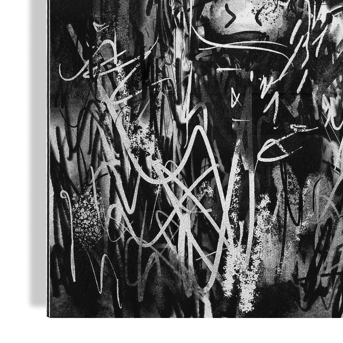 À propos de ‘Œuvre d'art abstraite numérique dans les tons noir et blanc. Peinture solide et robuste d'un Highlan’ par Emiel de Lange