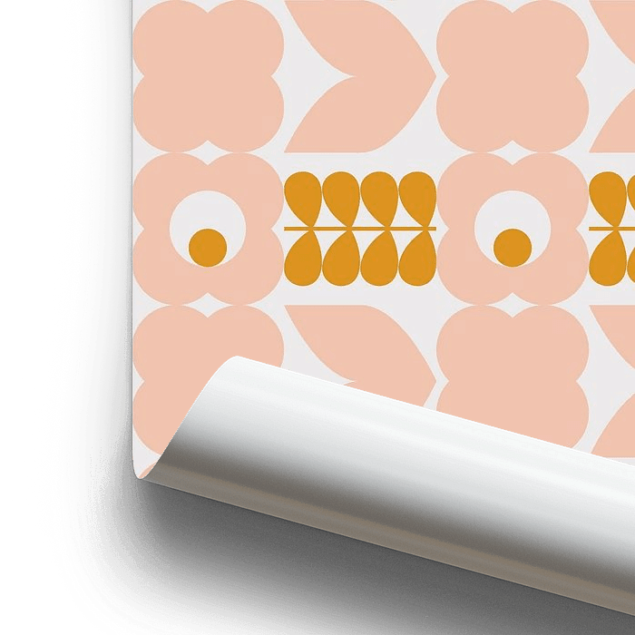 Art géométrique d'inspiration scandinave des années 70, 60 et 50 avec des fleurs stylisées dans des couleurs rétro. Couleurs et textures nostalgiques. Style intérieur boho-chic, rétro, moderne du milieu du siècle, scandinave, rural, nouveau rural.