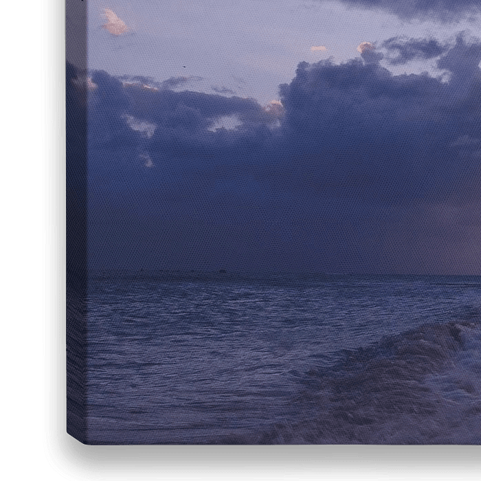 Coucher de soleil sur une plage près de Marathon sur les Keys de Floride. Les silhouettes des palmiers au bord de la mer et le ciel bleu violet donnent à cette photo une véritable ambiance de Floride.
