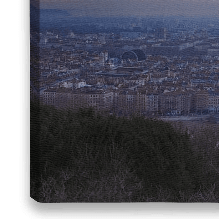Nuages au-dessus de la ville française de Lyon au lever du soleil. Vue depuis le point de vue situé à côté de la célèbre cathédrale Notre-Dame de Fourvière. Depuis cette attraction touristique, vous avez un panorama époustouflant sur la ville.