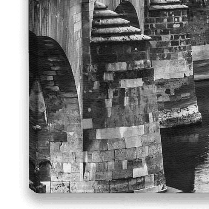 Panorama Maisons et Pont sur les bords de la Loire à Saumur en France en noir et blanc