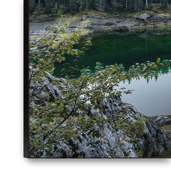 À propos de ‘Panorama du lac Karersee dans les Dolomites dans la lumière du petit matin’ par Lex van Doorn