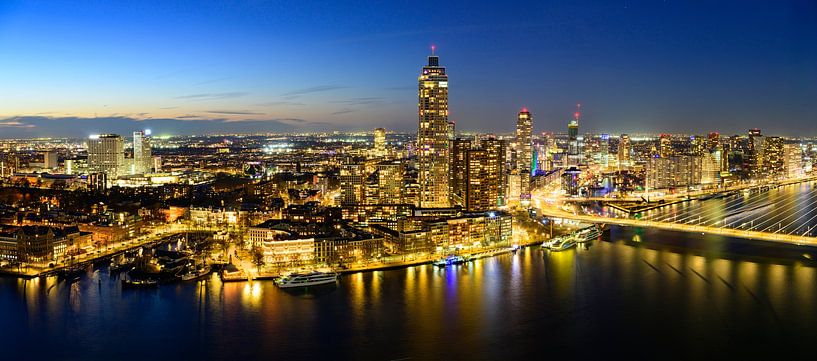 Achetez cette photo de Rotterdam Panorama nocturne de la ville de Rotterdam sur la Nieuwe Maas par Sjoerd van der Wal Photographie sur toile, aluminium, ArtFrame ou photographie (encadrée), impression d'art en haute qualité et tout format.