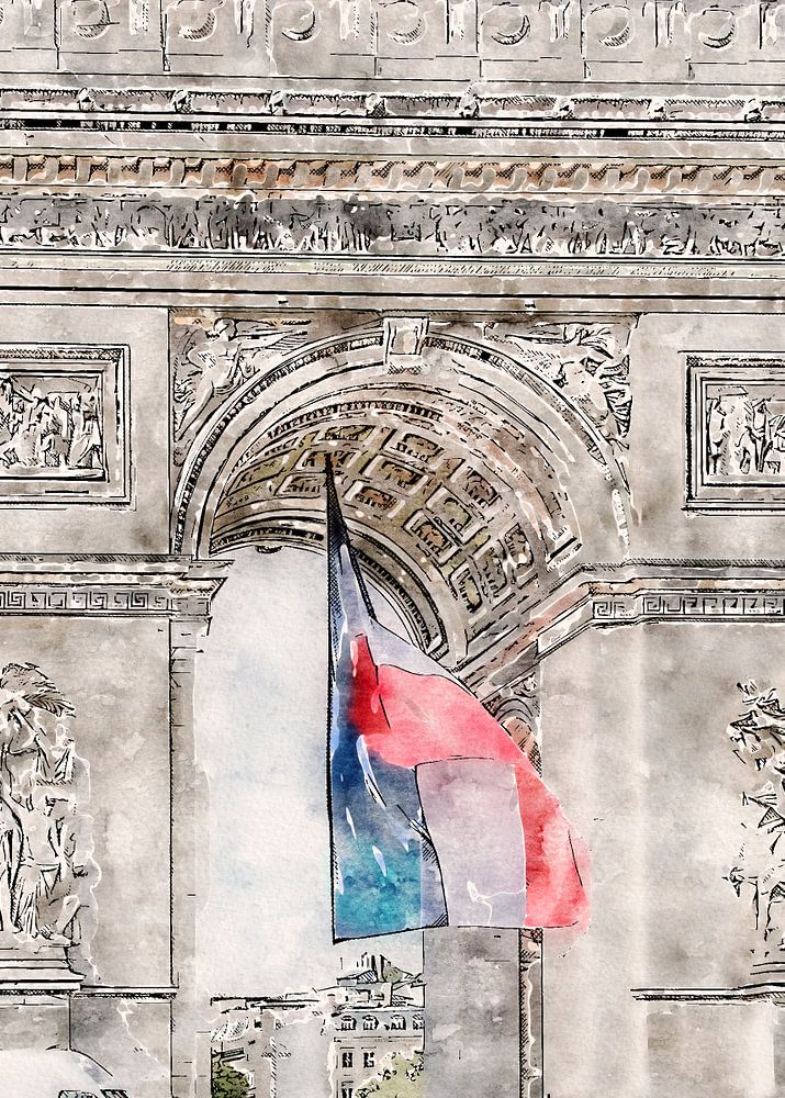 Acheter ce art numérique Paris L'Arc de Triomphe par Peter Roder sur toile, aluminium, ArtFrame ou photographie (encadrée), impression d'art en haute définition et tout type de format.