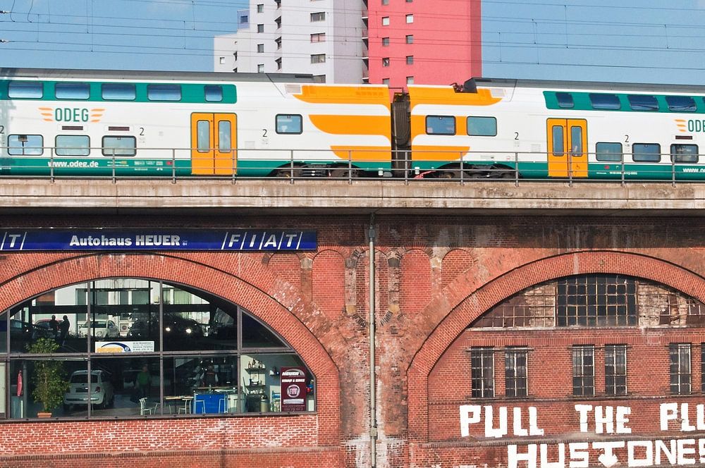 Passage d'un train sur le pont Michael à Friedrichshain par Silva Wischeropp